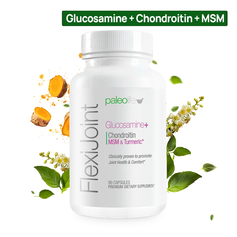 FlexiJoint es un suplemento cuya fórmula avanzada contiene 1500mg de Glucosamina, 150mg de Condroitina, 25mg MSM, y 5 activos naturales más (entre ellos la Cúrcuma y Boswellia) que contribuyen a la salud y confort de las articulaciones. Una solución natural para aliviar las molestias articulares, así como potenciar la regeneración y movilidad.