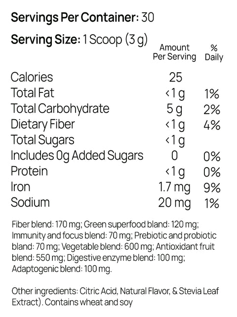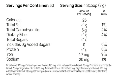 ¿Cuáles son los ingredientes? ¿Cuál es la información nutricional de 365Greens?