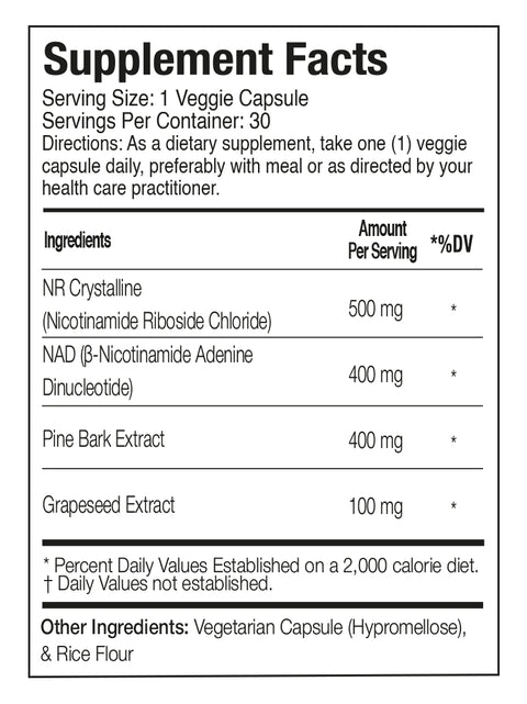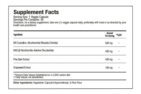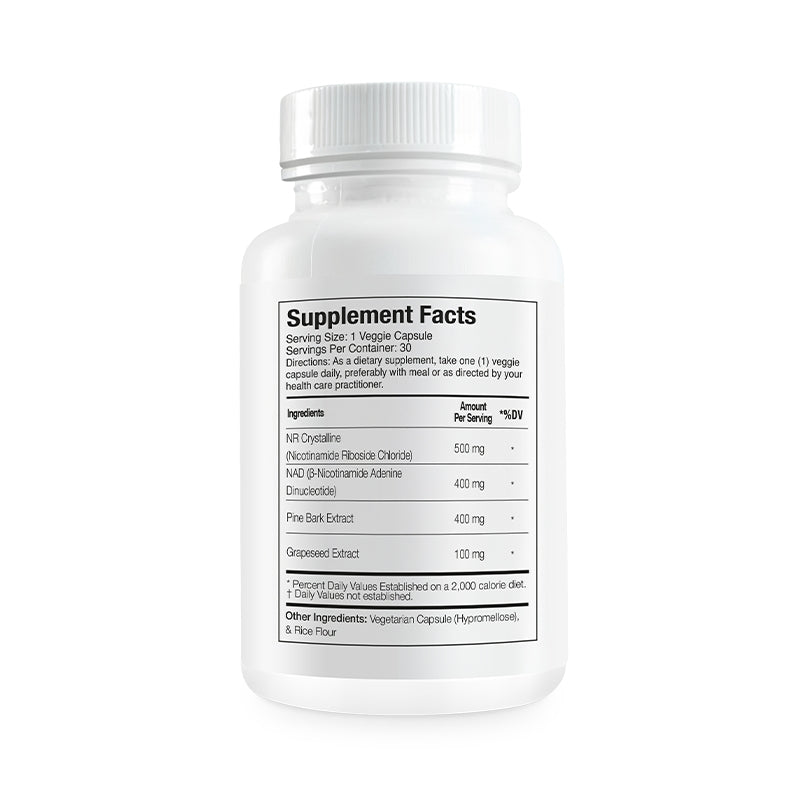 - 400 mg de NAD (β-Nicotinamide Adenine Dinucleotide)