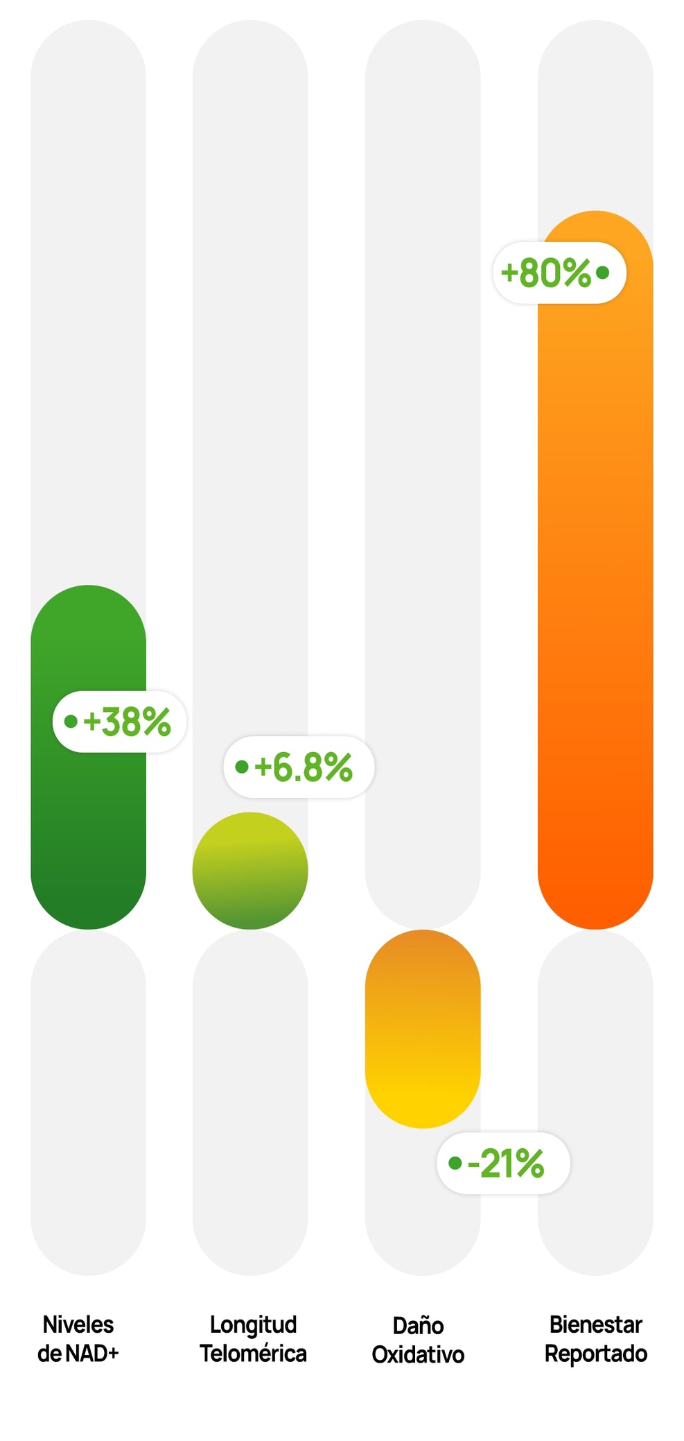 NADGenesis fue evaluado en un estudio científico independiente con referencias internacionales en diagnóstico celular y medición de telómeros. El objetivo fue analizar el impacto de la fórmula sobre biomarcadores clave relacionados con energía, protección antioxidante y longevidad celular.